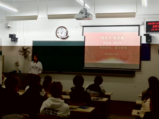 圍繞青年微講壇,我院開展“悅學習·躍青春”——青述課堂(第一期)活動。本次活動邀請2023-2024學年國家獎學金獲得者何航、劉靖、羅康力、劉先奧,以及“三有三實”優秀大學生标兵獲得者張思琪、雷祎陽、蔡光燃、劉趙薇共八位優秀學生代表分别前往2024級新生班進行交流分享。