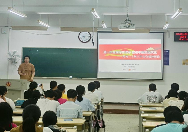 青年宣講班活動闆塊,我院在九月主題團日活動中開展“暑期歸來話實踐”活動,我院2024年暑期社會實踐标兵劉浩林同學分享他的豐富經曆和收獲。在十月主題團日活動中,“經歎号”青年宣講隊隊員姜普京同學帶領同學們深度解讀黨的二十屆三中全會精神活動,組織廣大團員青年深入學習二十屆三中全會精神,幫助同學們以黨的二十屆三中全會精神為指引,向榜樣看齊,從自身做起,樹立正确的理想信念和價值觀。