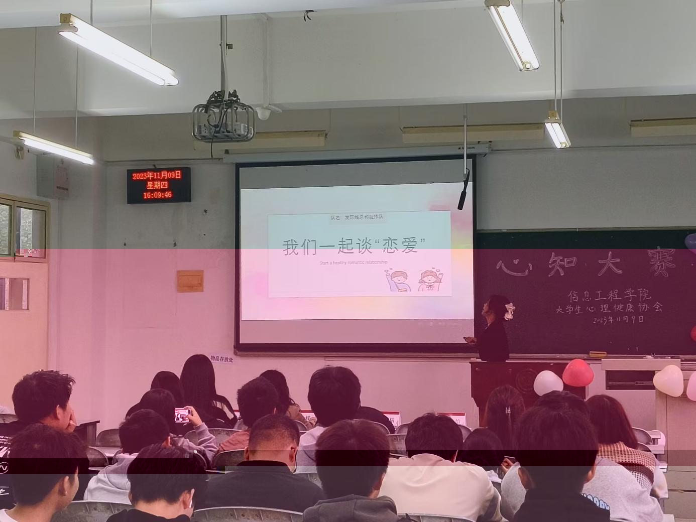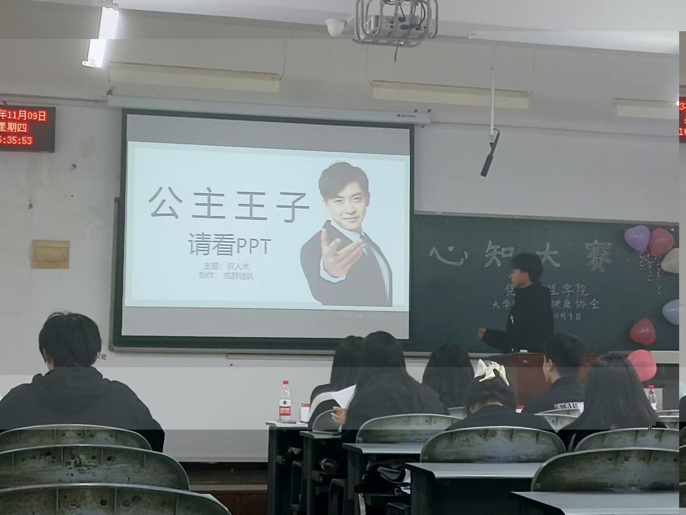 本次大賽主要分為兩個部分:心理知識搶答與PPT宣講。在心理知識搶答部分,由參賽隊伍選出1-2個人在比賽教室就坐,針對20道關于心理問題的選擇題,在微信小程序上分别搶答并由記分員統分。PPT宣講部分由17支隊伍就精神内耗、容貌焦慮、戀愛心理學等多種心理學知識話題進行宣講,評委老師從PPT制作、彙報表現、彙報時間三個方面進行打分,記分員按照評分規則核算得分,并由評委當場公布分數。
