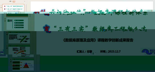 本次活動主要對參與2023年教師教學競賽暨第四屆湖北省高校教師教學創新大賽校賽決賽的《數據庫原理及應用》課程組教師決賽當天要現場展示的課程教學創新報告PPT提出修改建議。